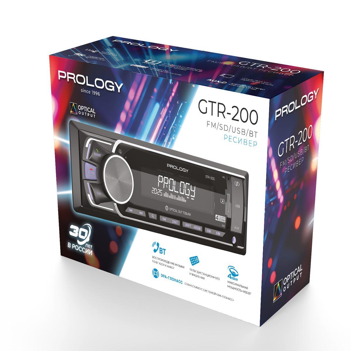 PROLOGY GTR-200 — современная широкофункциональная автомагнитола стандартного установочного размера 1DIN. Модель оснащена оптическим выходом TOSLINK, позволяющим оптоволоконным кабелем подключить к магнитоле процессорный усилитель, решив проблему электрических и электромагнитных помех, неизбежно возникающих при аналоговом соединении. При таком подключении цифровой сигнал передается без потерь и искажений, что позволяет построить аудиосистему класса SQ с безупречным качеством звучания.
