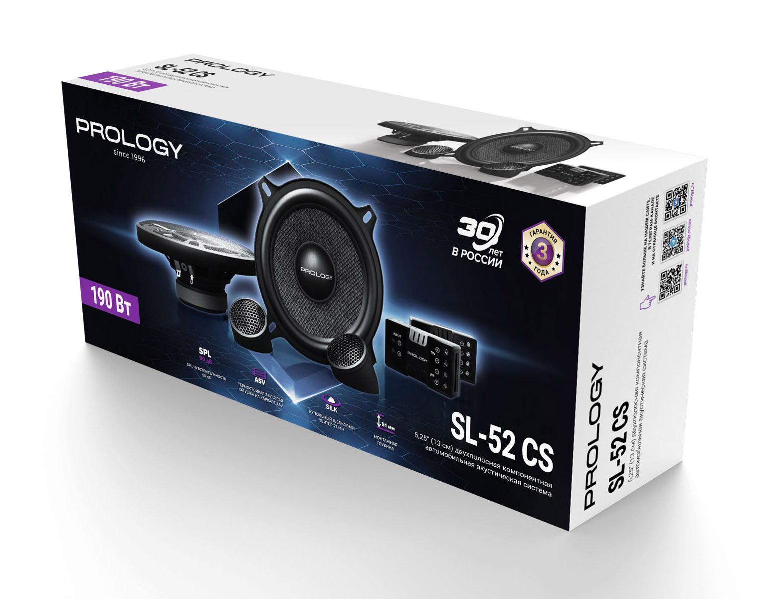 Линейка акустических систем PROLOGY SL разработана для использования в системах с магнитолой PROLOGY SL-300 или другими головными устройствами и создана для тех, кто ценит качественный звук. В серию вошли коаксиальные динамики SL-130 (13 см), SL-165 (16,5 см) и овалы SL-692 (16×23 см), а также компонентные акустические системы SL-52 CS (13 см) и SL-65 CS (16,5 см). Все модели серии обеспечивают качественное звучание и простоту установки. Оптимально подобранная магнитная система позволяет построить систему класса SQ, не добавляя при этом лишнего веса динамикам.